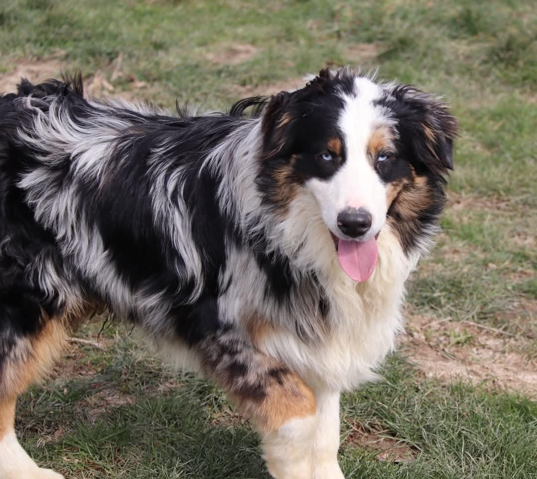 C EST UN BEAU MALE BLEU MERLE FONCE QUEUE LONGUE