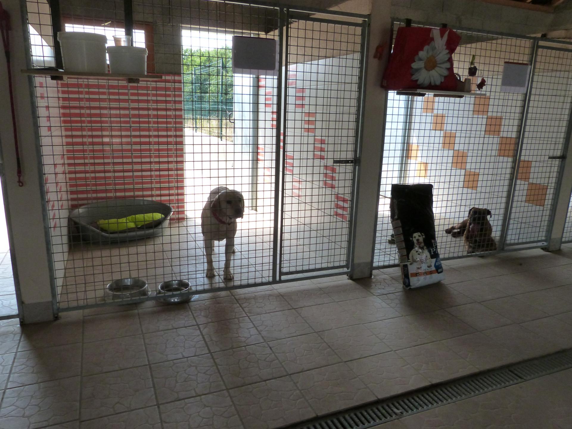 Il dispose d'un box individuel spacieux avec carrelage anti-dérapant .avec un banc de couchage ou d une corbeille plastique.d'une courette individuelle avec la possibilité de voir ses congénères.Vous pourrez lui emmener son tapis ou coussin et ses jouets