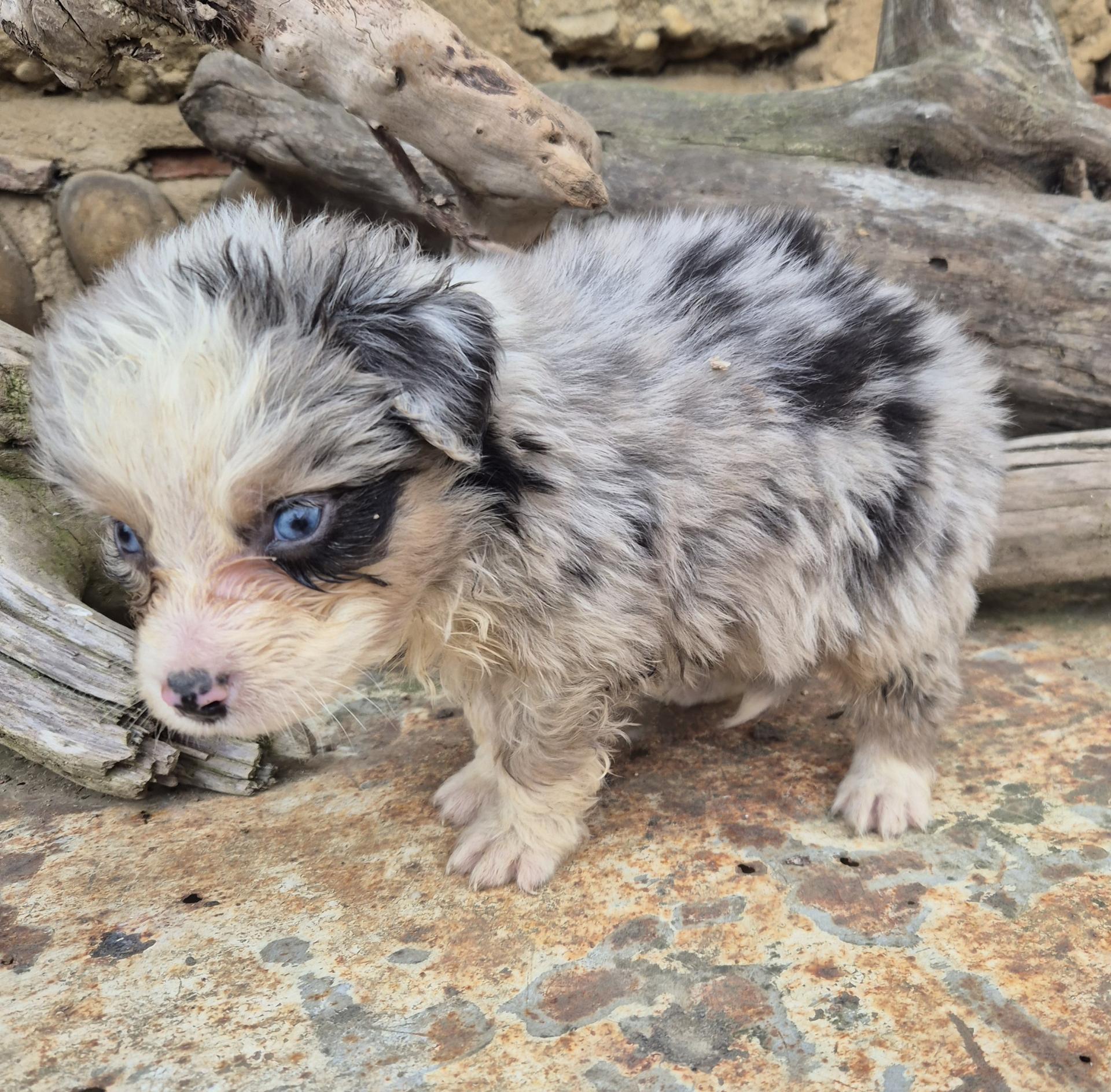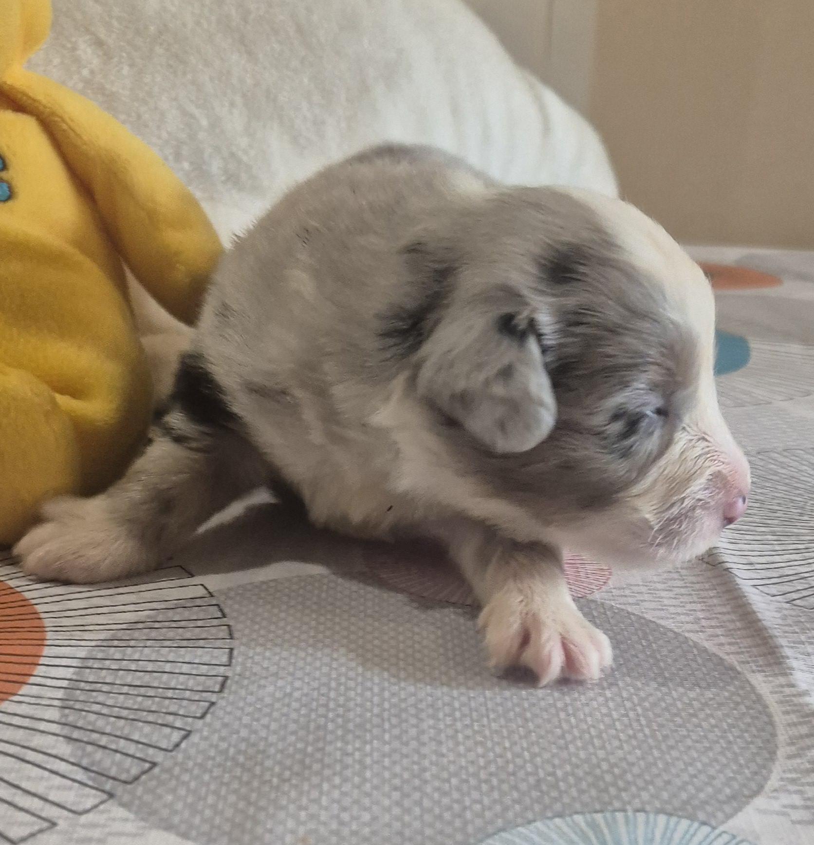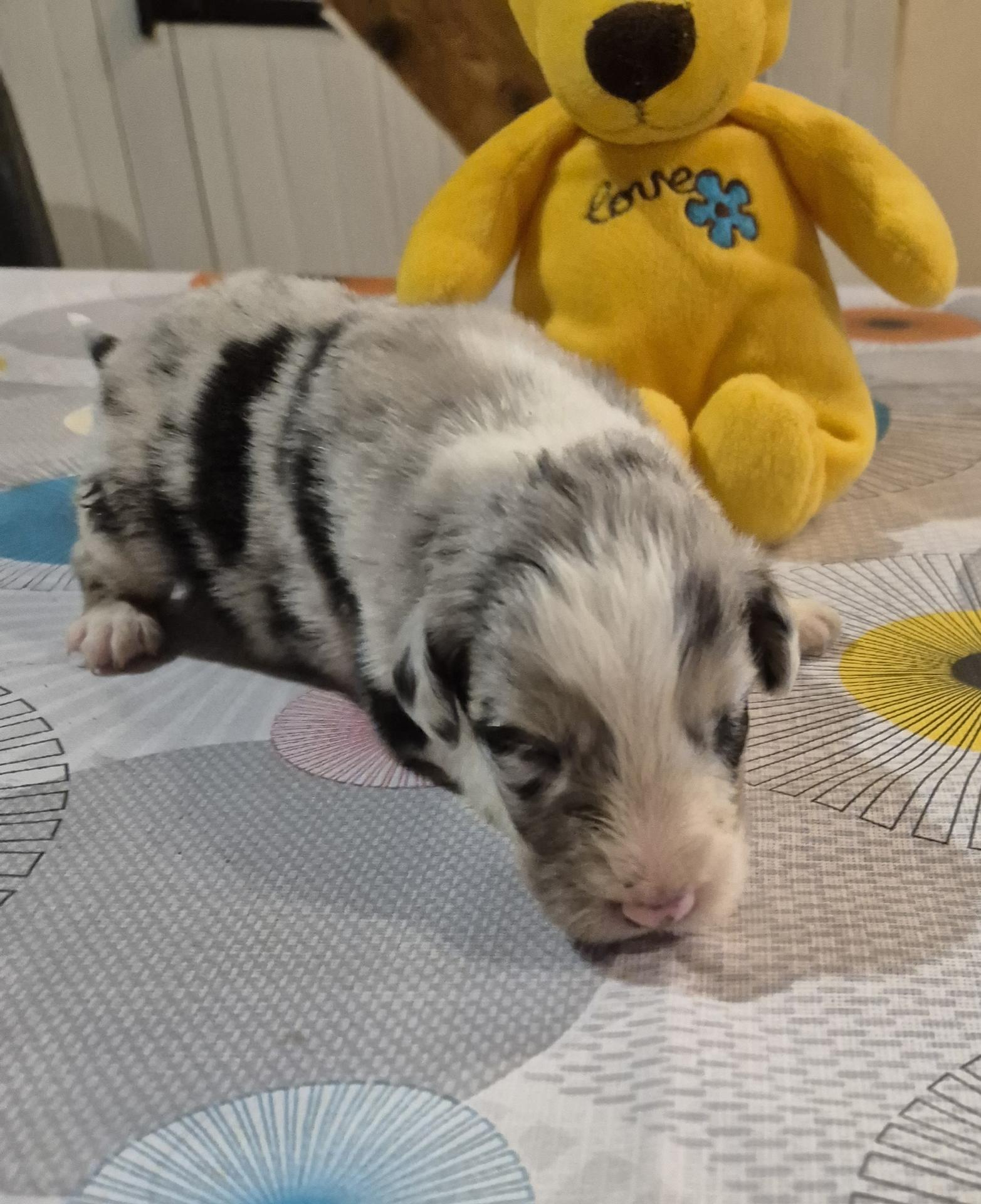 3eme male bleu merle yeux bleus (le plus petitou) RESERVE Gauthier VINOU 1300€ tendre et calin 20.kg adulte