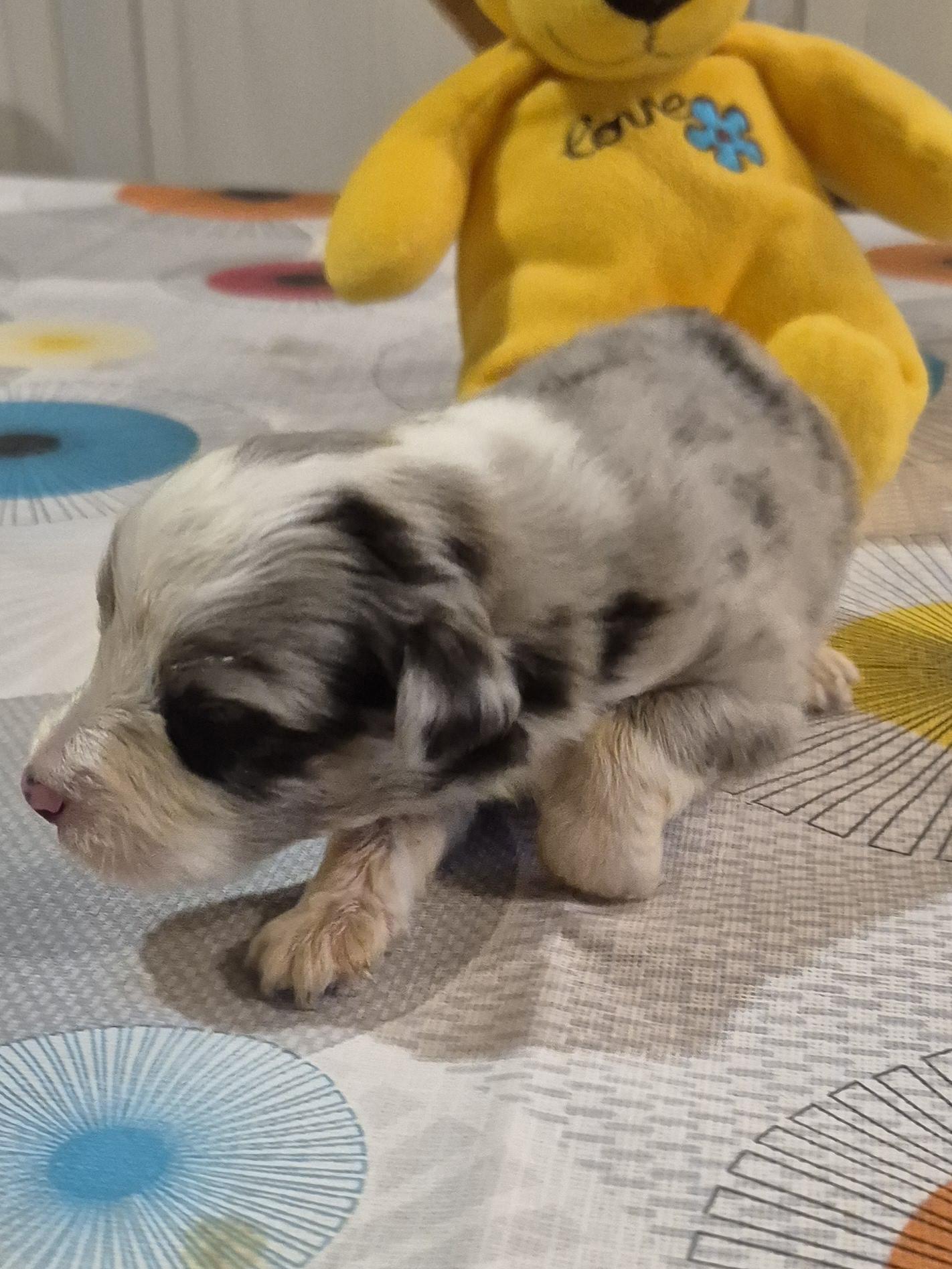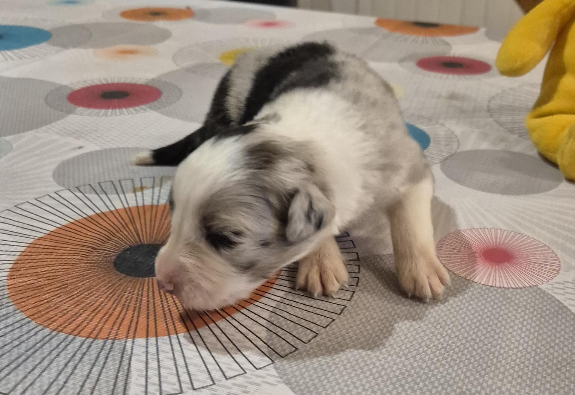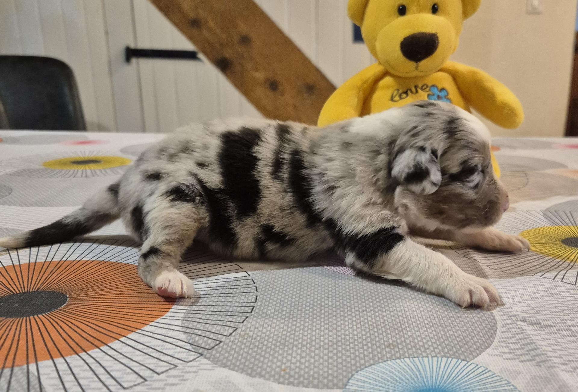 3eme male bleu merle yeux bleus (le plus petitou) RESERVE Gauthier VINOU 1300€ tendre et calin 20.kg adulte